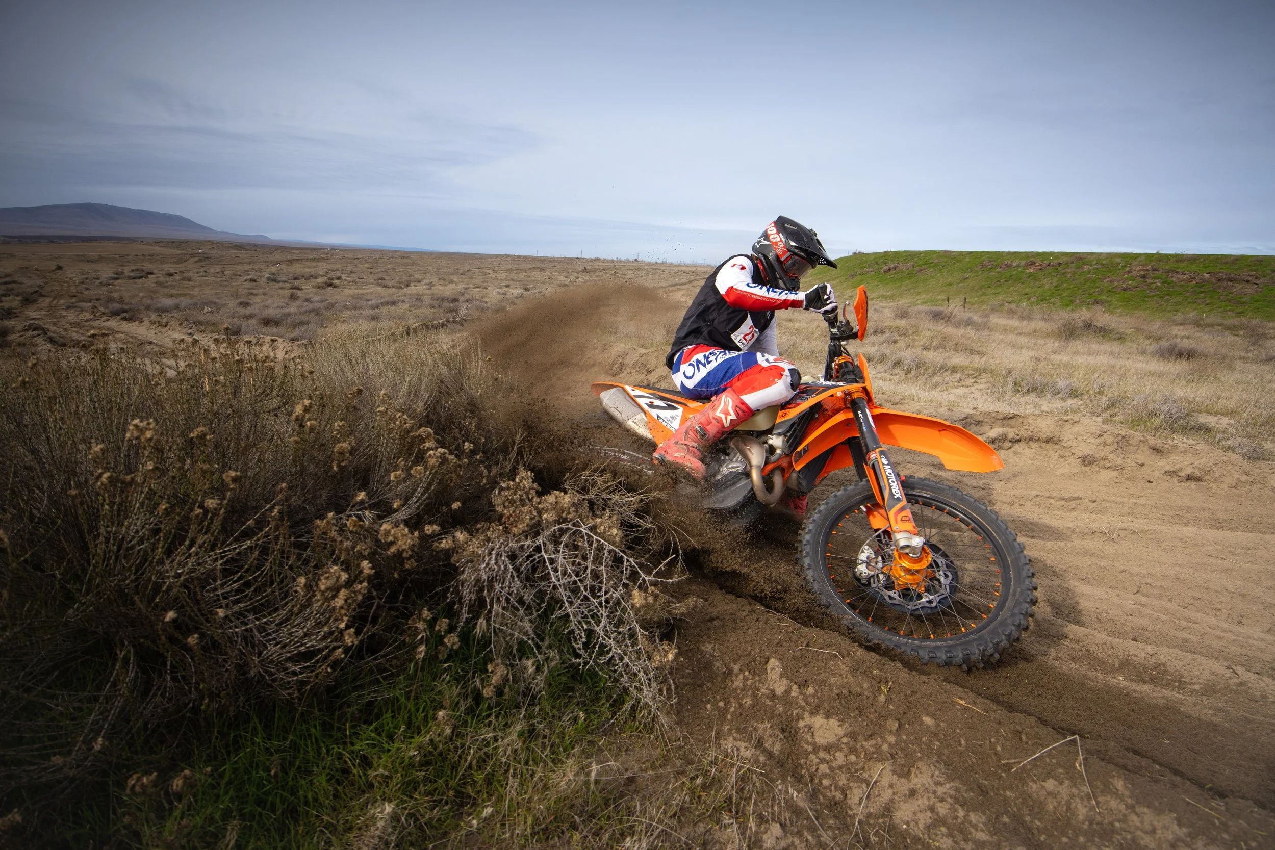 In the AA class, GNCC racer Layton Smail (Team Green Kawasaki) and 3X ISDE competitor Jaden Dahners (RPM KTM) made appearances, bringing more talent to the field. Both riders grew up in the Pacific Northwest, and it showed—they were contenders before the flag even went up. Dahners had a rough start, with his bike failing to fire, leaving him dead last off the line. Undeterred, he passed five riders in a single corner and continued methodically picking off racers in the class. Once he made his way past Chase Larson (Beta), Dahners found a rhythm and settled into second place. Smail took the lead early, jumping into first as soon as the riders entered the woods. Despite battling goggle issues, he held onto that position for the entire race to take the win. Chase Larson, who hails from the east side of the mountains where the terrain is more open and less wooded, found himself in unfamiliar territory navigating the tight, rain-soaked trees. Still, he held on to finish a solid third and complete the AA podium.